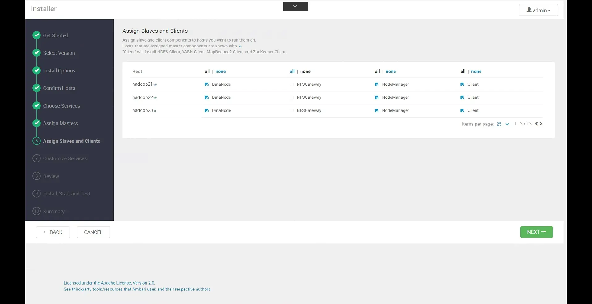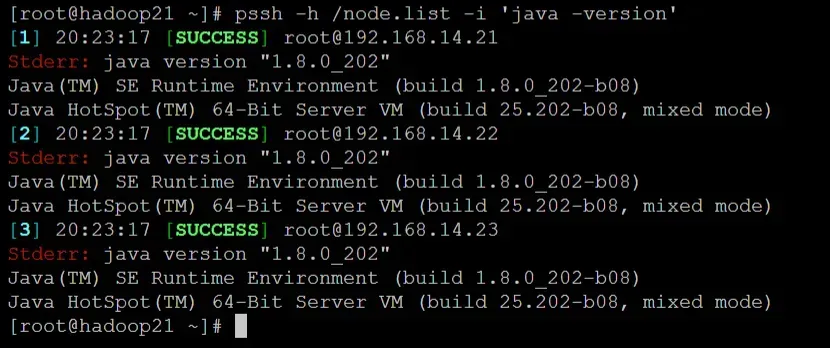 分别将3台服务器hostname分别设置为hadoop21、hadoop22、hadoop23