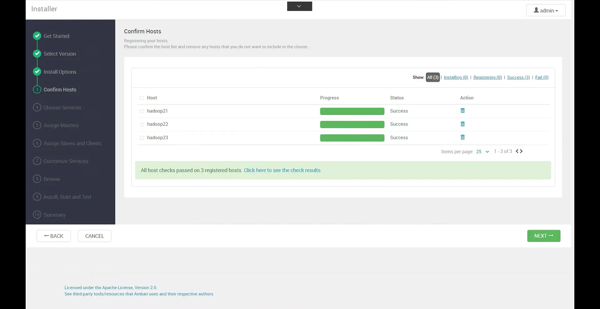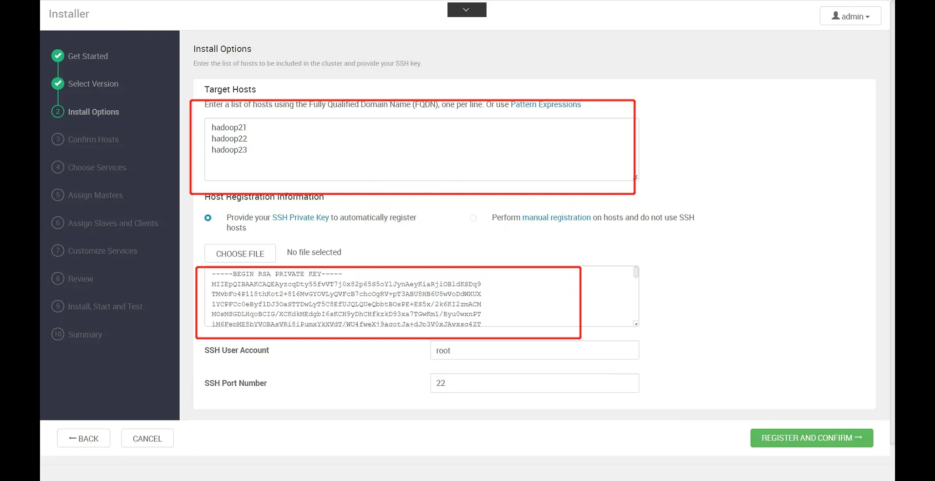 下载主节点的/root/.ssh/id_rsa,并上传!点击下一步,进入确认主机界面 也可直接cat /root/.ssh/id_rsa 粘贴即可