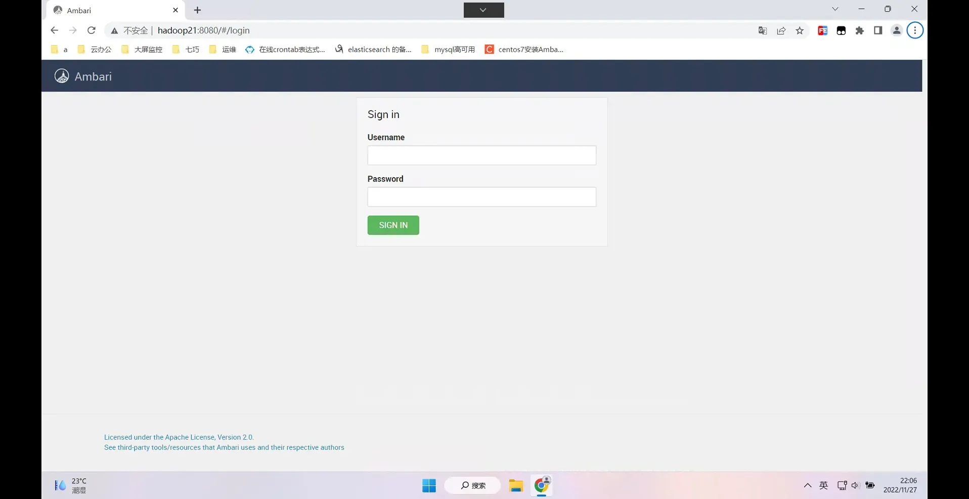 centos7环境 hadoop21 5g+32g hadoop22 4g+32g hadoop23 4g+32g